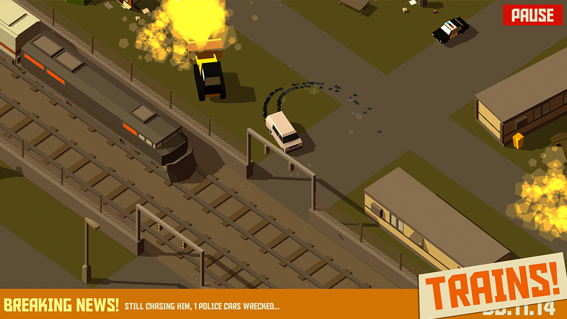 Pako is a car chase highscore hunt for mobile. Escape the cops and avoid obstacles as long as possible before the inevitable crash. Levels differ to each other and have bonus elements like zombies and tanks.